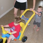 The days we have waited for have finally arrived. The days when our two little guys are running around the room to “raceâ€, playing cars together and are learning what it means to be brother’s and friends. For the longest time Blake’s toys were his. Brayden’s were his. The two did not intertwine. Different developmental interests and little interaction. These days, Brayden is enamored by his brother and will engage with and mirror what he does. This includes, but is not limited to, deciding to fling his food on the grounds because his brother temps him to do so.