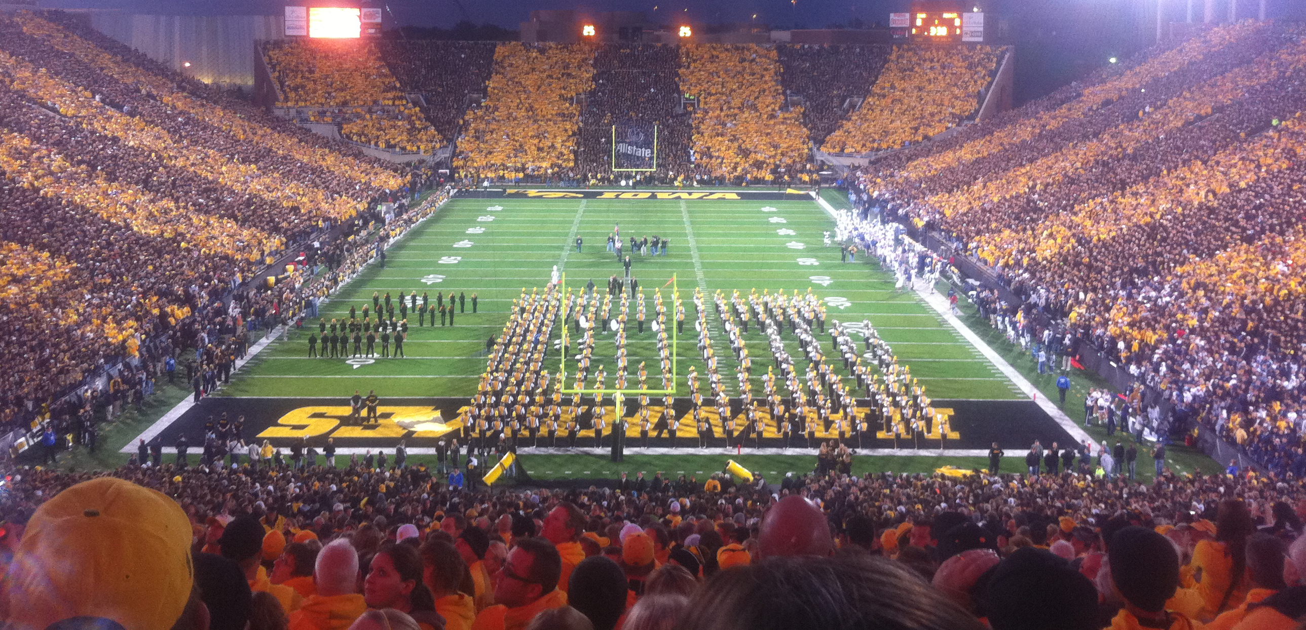 Yes, that is right. We were there for the Penn State game. You know honestly, I didn’t know if we could pull off the yellow and black stripe look, but as you can see by the picture below hawks fans never cease to amaze me! It was a great game full of exactly what I expect and love from this Iowa Hawkeye football team, defensive stops! Our defense never gave them a chance. Of course our offense did a great job too, but as I love to say, “In the Big Ten (11 or 12) defense wins games”